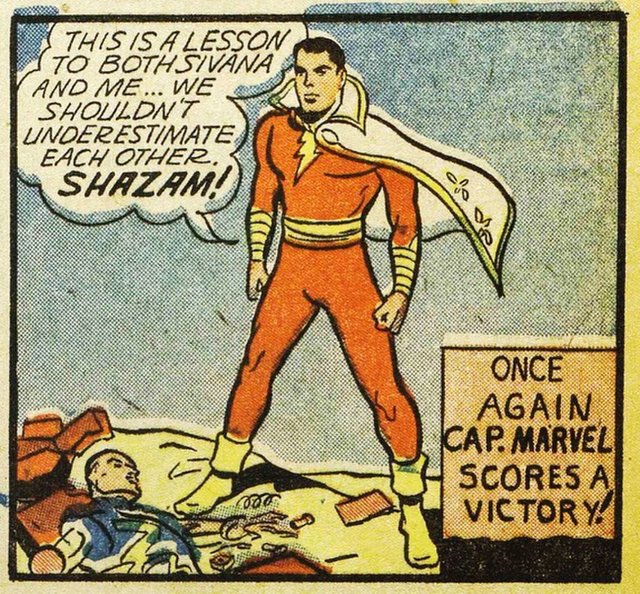 “Still, as a tribute to the Good Captain’s immense popularity as a fighter of the evils of man (the Seven Deadly Sins) and a colorful array of dastardly villains (Dr. Sivana, Mr. Mind, Captain Nazi, Black Adam, King Kull, etc.) he became a role model for generations of kids (and adults) both in the pages of those Golden Age comics and later in the media of film and television; and yes, I was one of those kids.