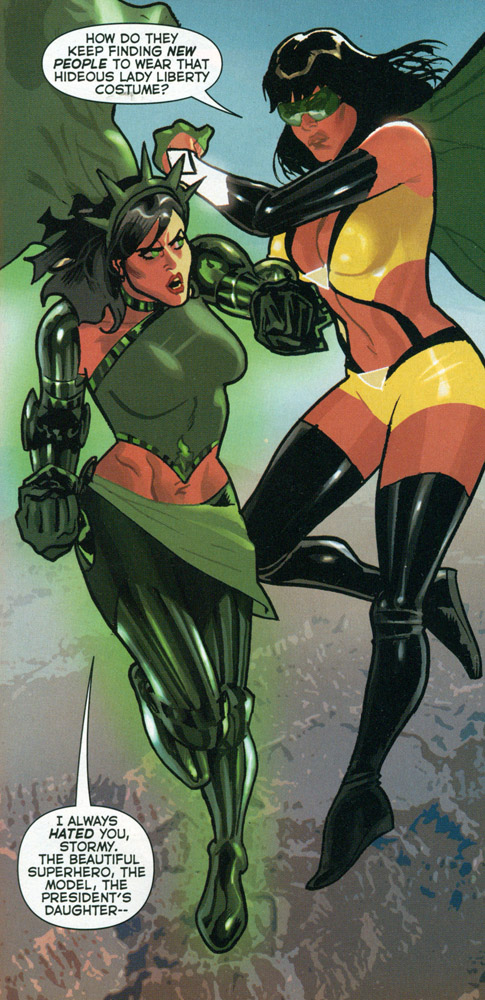 (1989). Art by Chuck Austen.Stormy Knight battles Lady Liberty, from Uncle Sam & the Freedom